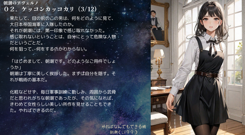 AIを駆使した、新時代官能小説です。艦これや、Aiを使ったシナリオライティング等。